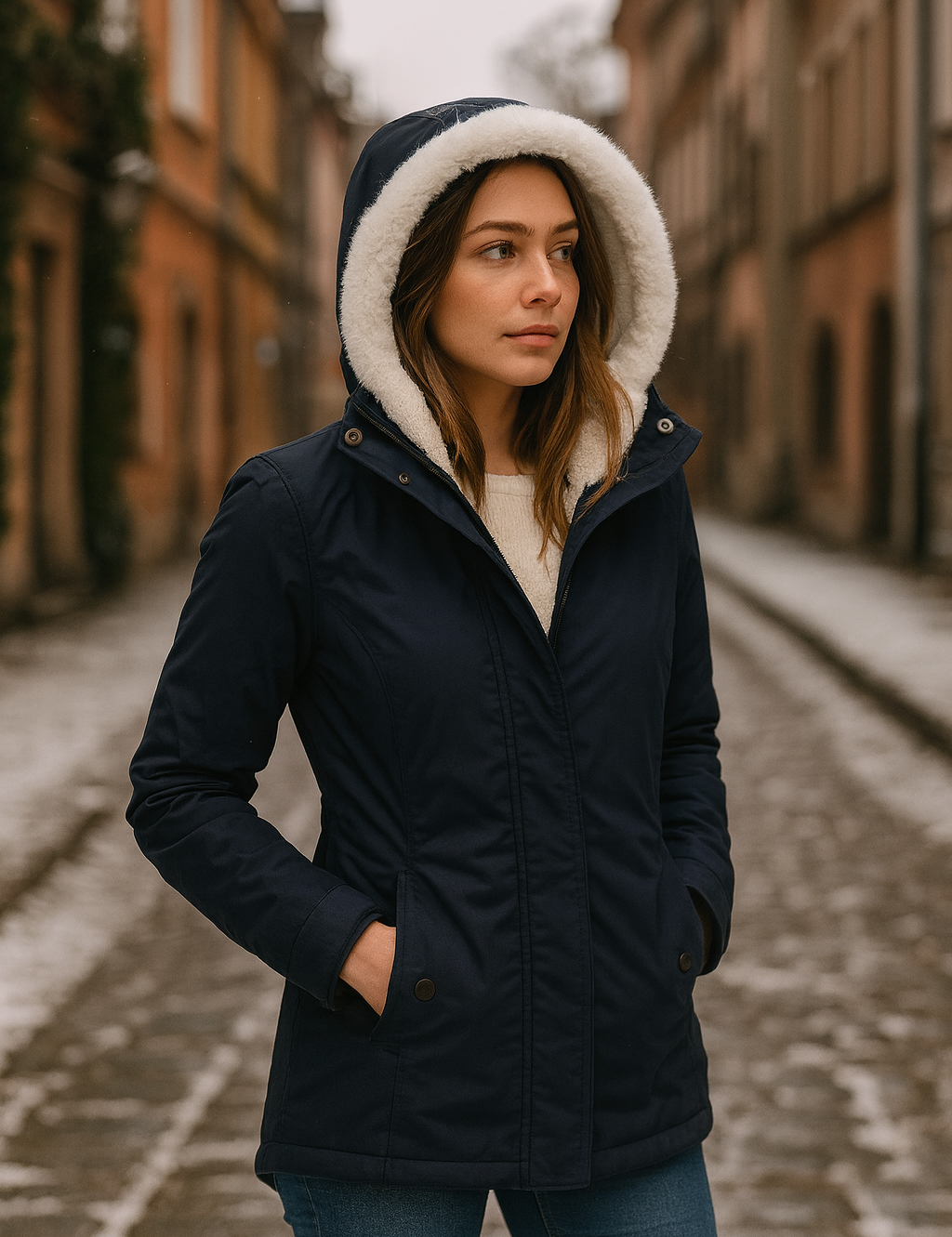 Nolwen - Stylový Zimní Kabát S Kapucí A Výplní