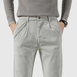Obchodní kalhoty byly navrženy pro moderního muže, který si cení stylu a pohodlí. Vyrobeny z vysoce kvalitní tkaniny s přizpůsobeným střihem, tyto kalhoty poskytují elegantní a profesionální vzhled, ideální do kanceláře, na formální akce nebo obchodní schůzky.