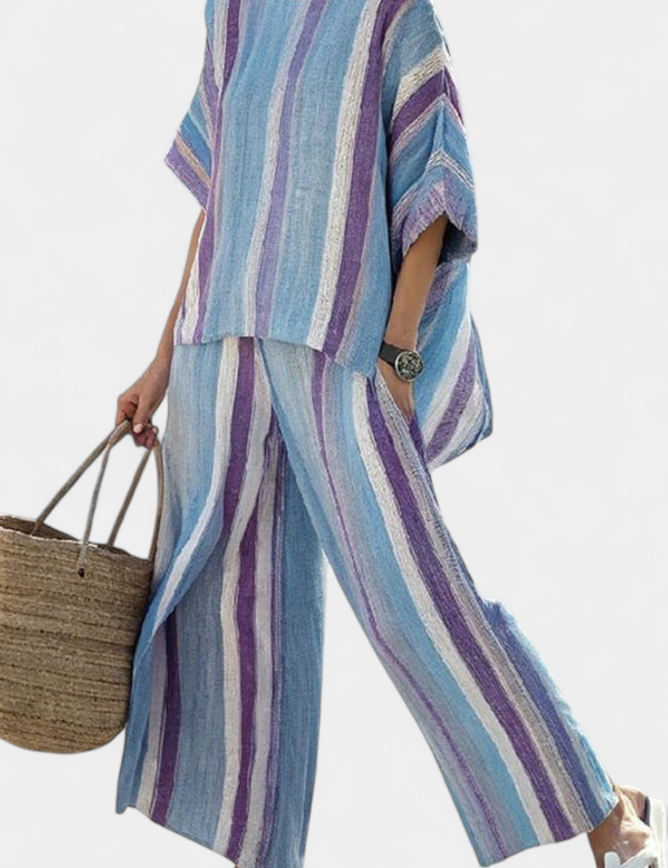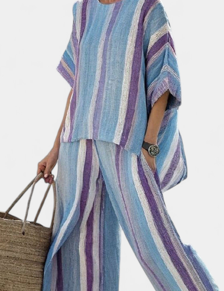 Elegantní pruhovaný set Daisy v odstínech malvy a světle modré pro sofistikovaný vzhled