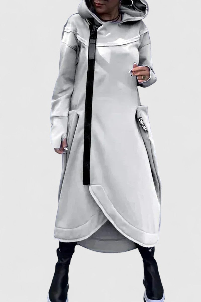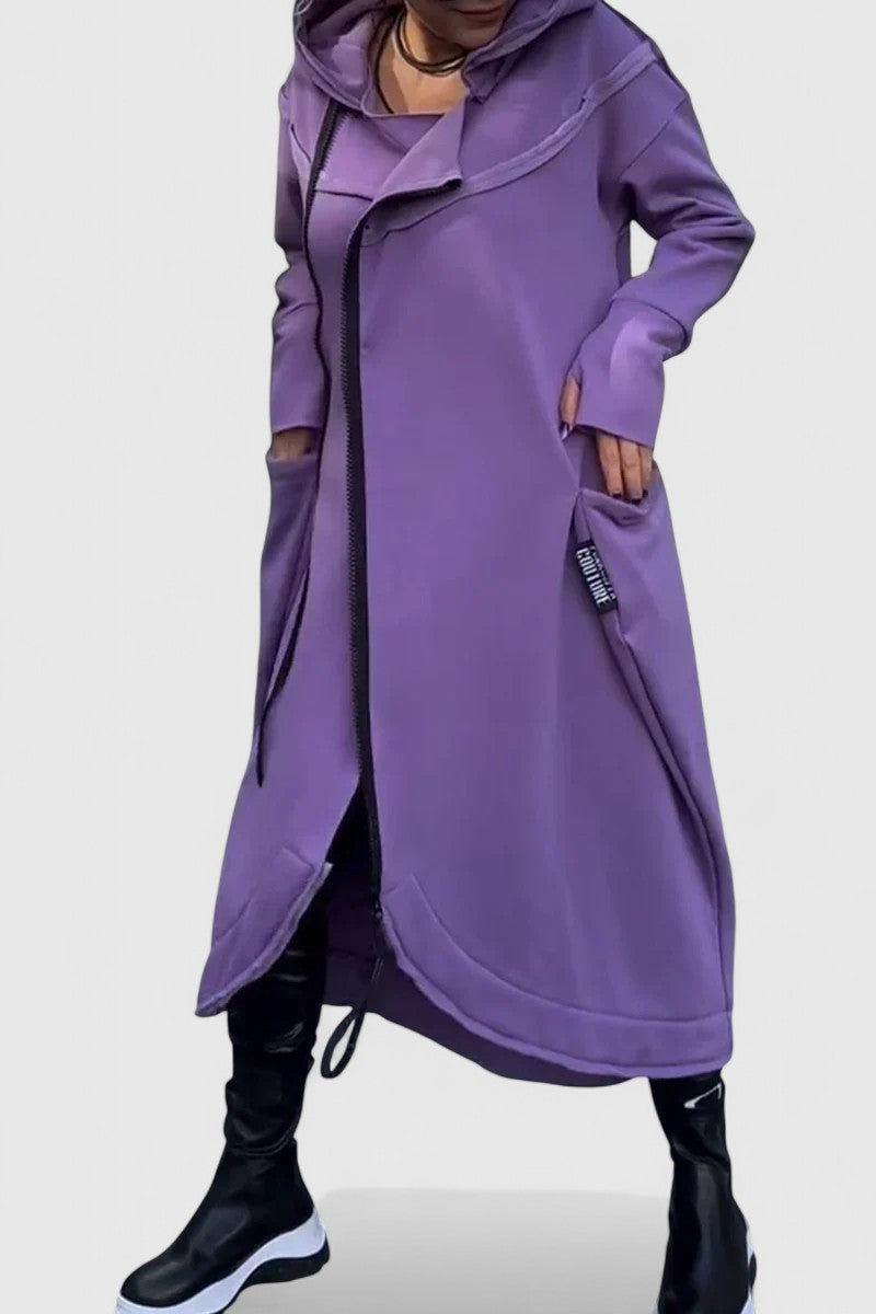 MARIE-Dlouhý kabát s kapucí a zipem