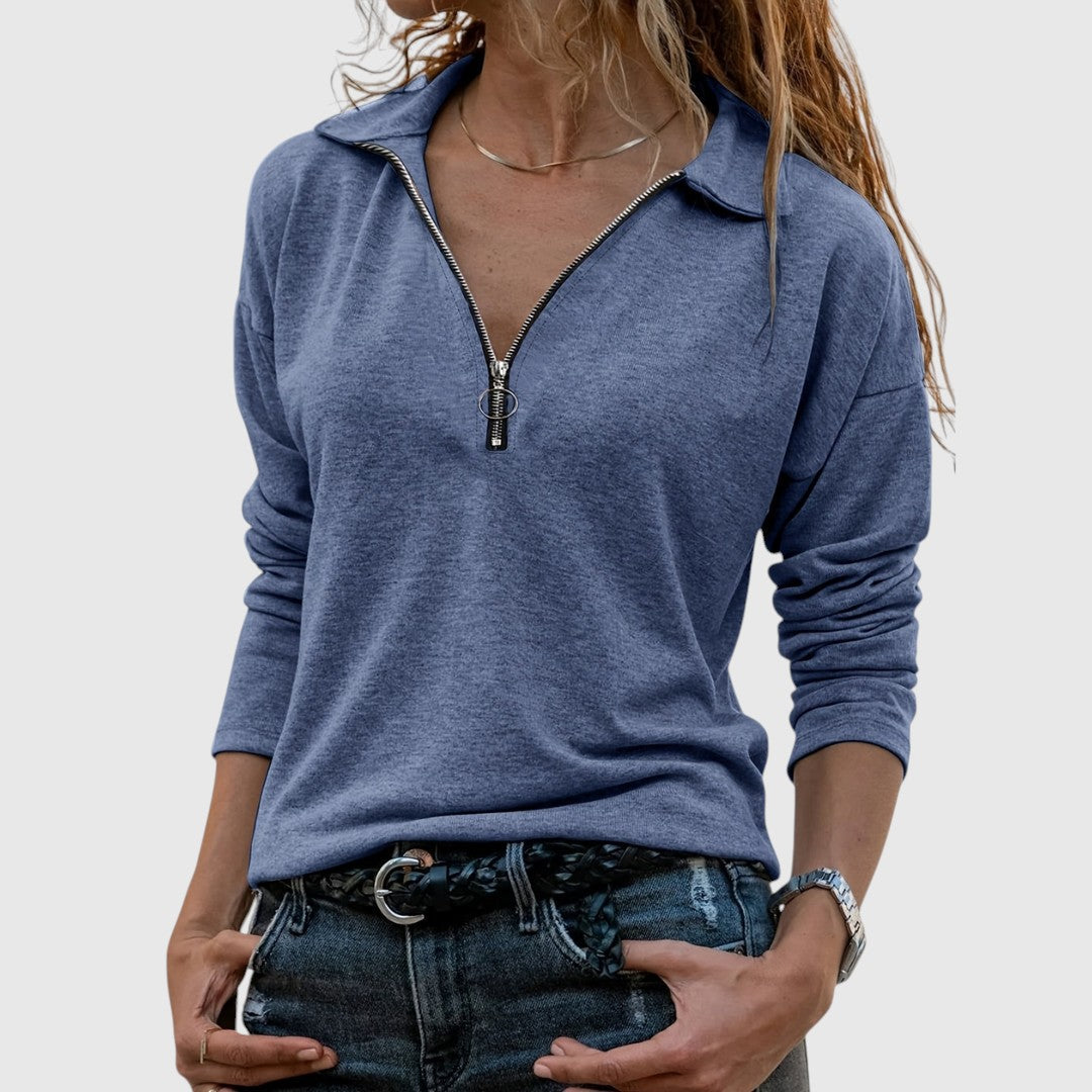 Udělejte si ze svetríku Nadine s půlzipem svůj nový oblíbený kousek pro pohodlné a bezstarostné stylování. Omezené množství skladem – chyťte si svůj, než bude pryč!