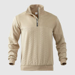 Tento pletený svetr se zipem na čtvrtině délky je dokonalou kombinací sofistikovaného stylu a každodenního pohodlí. Díky měkkému materiálu a strukturovanému designu je tento svetr velmi univerzální: ideální do práce, na každodenní nošení nebo pro elegantnější look v chladném počasí. Jemné detaily, maximální působivost.