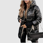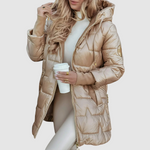 Dámská zimní bunda s kapucí a prošívaným designem