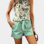 Obnovte svůj šatník s touto jasnou a svěží sadou, ideální pro teplé jarní a letní dny. Halter top nabízí moderní střih, který zvýrazňuje ramena, zatímco odpovídající šortky s páskem dodávají styl a pohodlí při vašich každodenních výletech.