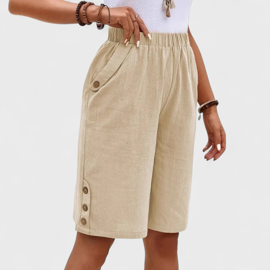 Šortky Signe kombinují měkký, prodyšný materiál s lehkým střihem, který se přizpůsobí vašim potřebám - ideální pro horké dny, piknik v parku nebo odpočinek doma. Díky elastickému pasu zůstávají pevně na svém místě, aniž by omezovaly pohyb.