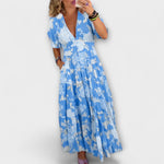 Catrisa - Kvetinový vzor V-krk šaty s kapsami