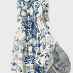 Objevte kouzlo našich dlouhých šatů na bílém pozadí s modrým květinovým vzorem, které vyzařují svěžest a eleganci. Jejich vzdušný design přináší romantickou atmosféru, zatímco pásek v pase zdůrazňuje vaši siluetu přirozeným a ženským způsobem.