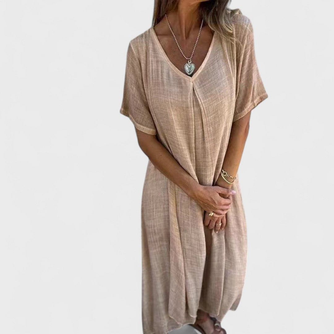Kaya - Maxi šaty s výstřihem a balónovými rukávy